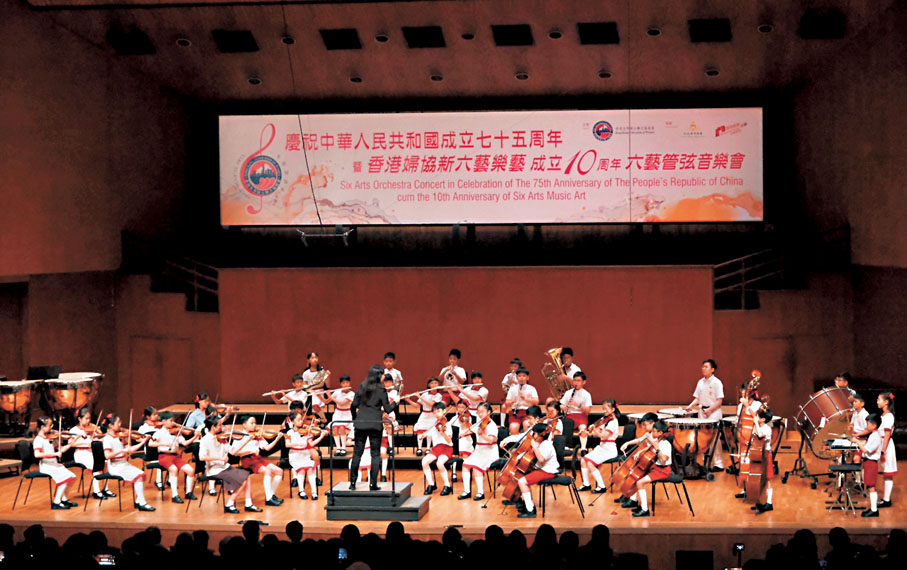 香港文匯報訊(大公文匯全媒體記者 郭悅盈)為慶祝中華人民共和國成立75周年暨香港婦協新六藝樂藝成立10周年,香港婦協昨日於香港大會堂音樂廳呈獻六藝管弦音樂會,演奏多首中外名曲。是次音樂會希望能夠促進中外音樂藝術文化交流,同時為觀眾帶來嶄新的觀賞體驗。音樂會邀請到香港著名鋼琴家余嘉露演奏,六藝管弦樂團還演奏了家傳戶曉的《黃河鋼琴協奏曲》交響作品。