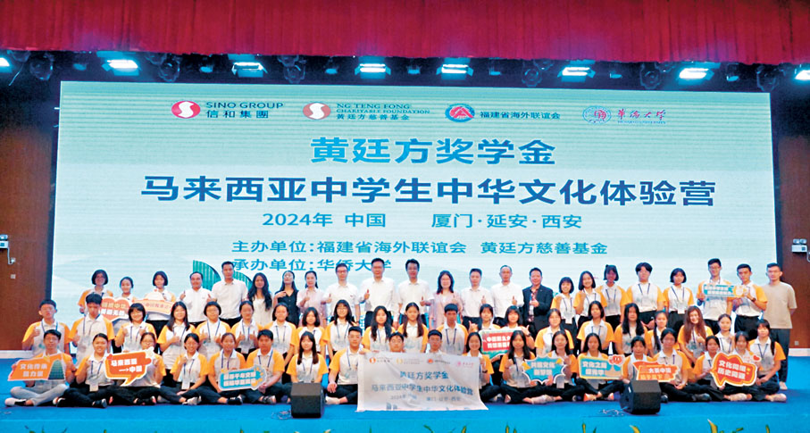 香港文匯報訊(記者 蔣煌基 廈門報道)2024年「黃廷方獎學金」馬來西亞中學生中華文化體驗營開營儀式,昨日在華僑大學廈門校區舉行,來自馬來西亞中南馬21所中學48名學生參加。8天的行程中,學生們將踏着著名愛國僑領陳嘉庚的足跡參訪廈門集美學村,到鼓浪嶼感受萬國建築魅力,其間將體驗欣賞閩南文化木偶戲、南音等。隨後,學生們將前往陝西省,參訪革命聖地延安,體驗安塞腰鼓、尋根黃帝陵,亦將到訪古都西安,參觀兵馬俑等。