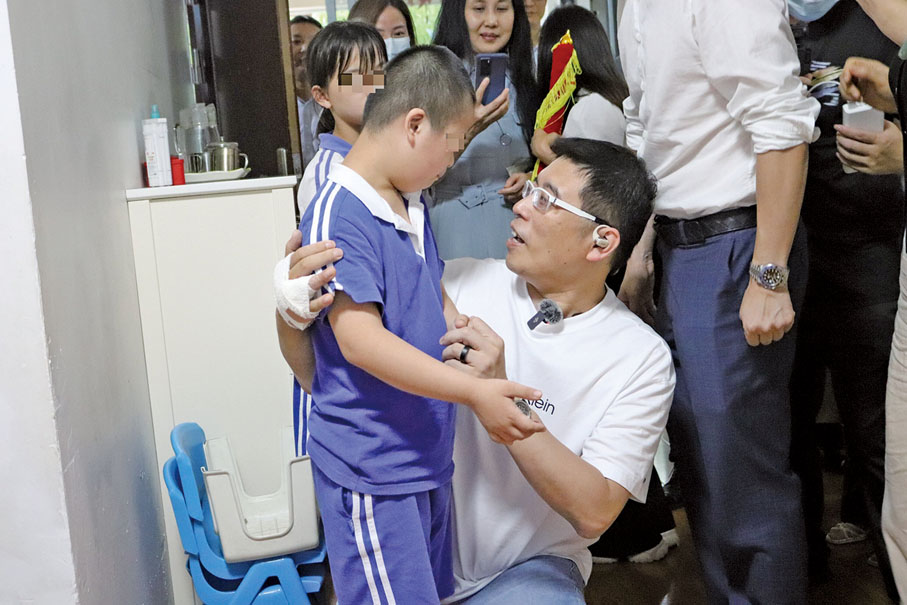 9月10日下午,莊紫祥帶隊趕赴深圳市兒童福利機構,與工作人員交談福利院現況,為院內的殘障兒童送上中秋禮物並同他們愉快玩耍。當莊紫祥走進孩子們居住的房間的時候,有幾個孩子立刻就認出了他並主動上前和他擁抱。這是因為近年來莊紫祥與其團隊常常會在重大節日來臨之際過來看望他們,孩子們也都盼望着這位「莊叔叔」的到來。對此莊紫祥表示,他很榮幸有機會為這些特殊的孩子們送上一點心意,希望能讓他們在中秋佳節這個特別的日子,感受到家的關愛、家的溫暖。他也向福利院的各位工作人員表達敬意,衷心感謝他們為特殊教育事業所做的一切。