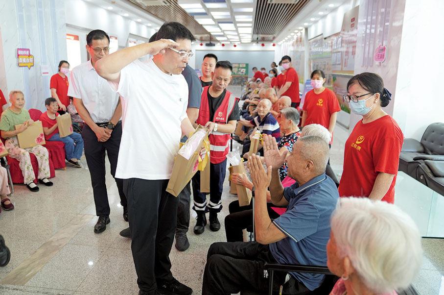 9月11日中午,莊紫祥帶隊趕赴深圳益壽頤養院,為院內老人送去節日的祝福與禮物。在現場,莊紫祥親自為在場每一位長者派發月餅,並表達自己對他們的祝福。他表示,這些長者們把青春奉獻給了祖國的建設,是他們過去的付出與犧牲,才換來大家今天的幸福生活。他今後會常來看望、陪伴他們。住在頤養院的林奶奶表示,通過此次活動她切實感受到了莊紫祥對他們的掛念,這讓她心中暖洋洋的。隨後,莊紫祥與益壽頤養院院長黃海山、寶龍街道辦事處主任劉淼等就養老院運營情況、跨境養老等問題進行探討。