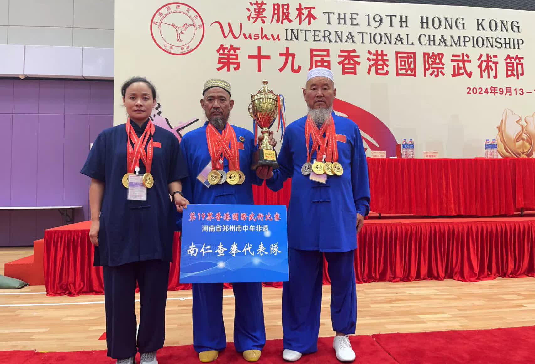 (香港文匯網記者 馮雷)中秋佳節之際,2024年「漢服杯」第十九屆香港國際武術節在香港馬鞍山體育館舉行,河南省鄭州市級非遺項目南仁查拳代表性傳承人郭志強、李玉民、郭靜參加此次大賽,共斬獲八金兩銀的好成績。