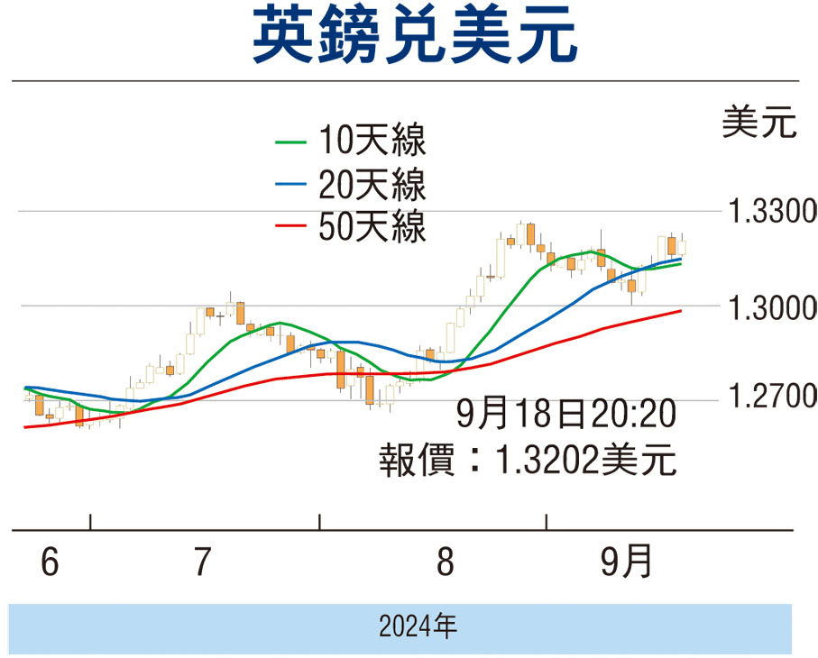 此外,美國非農就業數據連月表現不振,加上美國8月份零售銷售轉弱,美國聯儲局本周三晚公布議息結果之前,美元指數持續受制101.00至101.10之間的阻力位,反彈乏力。隨着美元指數趨於下行,英鎊有機會進一步上試近1年半以來位於1.3270至1.3300美元之間的主要阻力區,預料英鎊將反覆走高至1.3400美元水平。