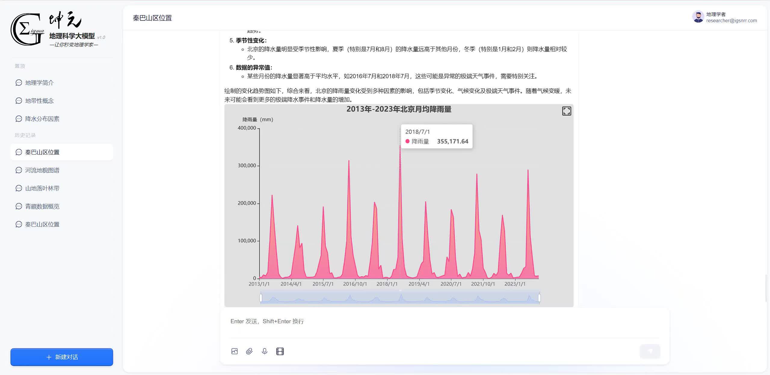 在發布會現場,蘇奮振演示了「坤元」大模型的實際應用。記者觀察到,與其它通用大模型相比,「坤元」能夠充分考慮地理知識愛好者、地理學專業學生以及科研人員的地理科學知識體系認知和表達差異,以圖文共現的方式給出適配用戶知識結構的地理學專業問題解答。此外,「坤元」還可以根據用戶指令完成概念理解、數據獲取、信息分析、製圖綜合等流程,最終生成用戶需要的專業地理圖表。