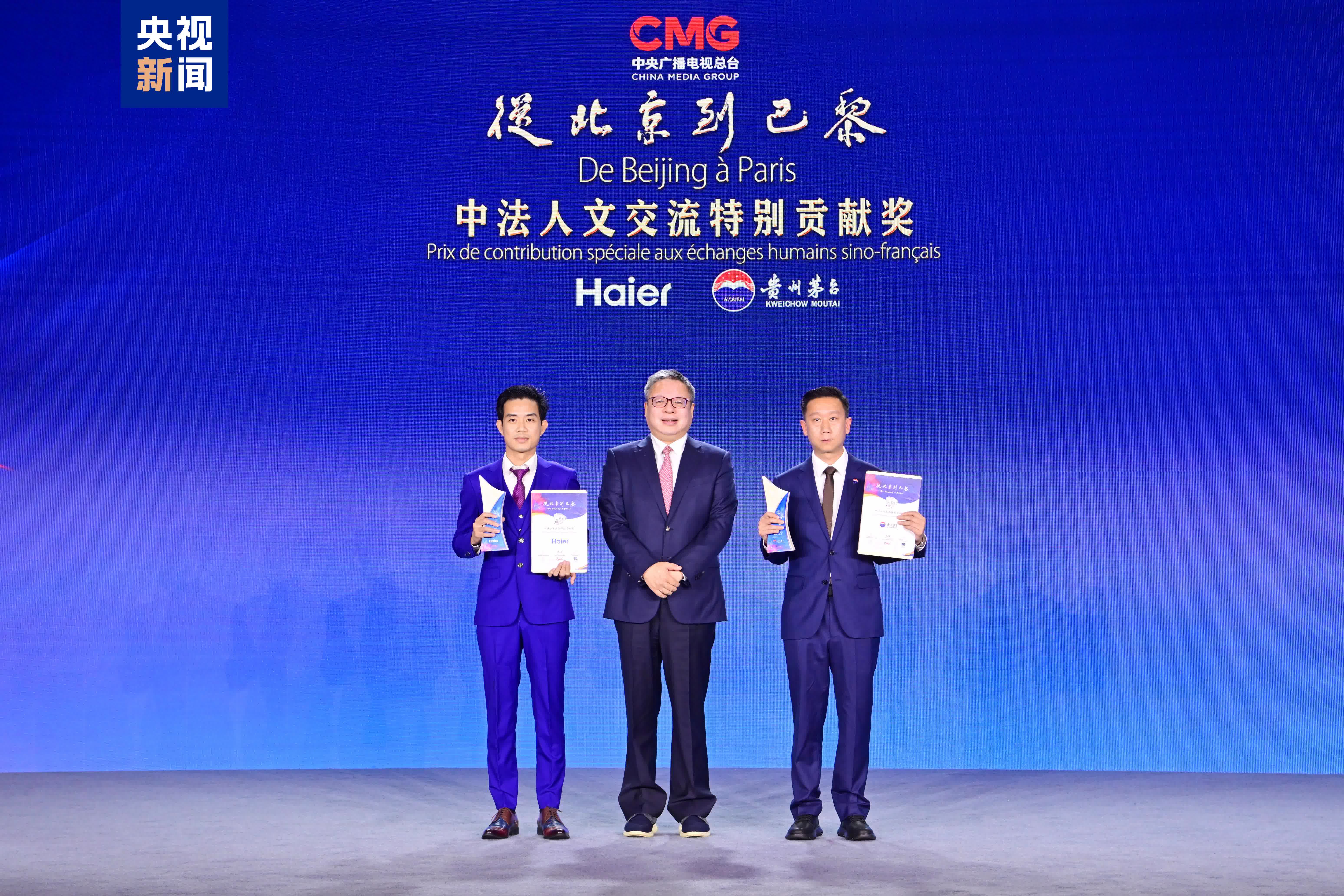 活動上,參展活動特別支持單位茅台集團、海爾獲頒「從北京到巴黎——中法人文交流特別貢獻獎」。