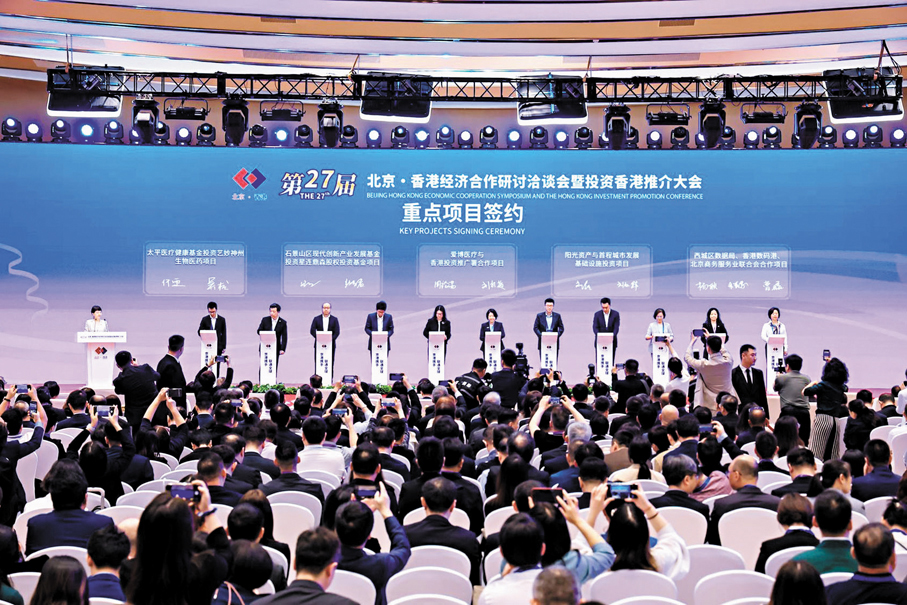 第二十七屆北京·香港經濟合作研討洽談會暨投資香港推介大會昨日在中關村國際創新中心開幕,來自京港兩地政府機構、國際商協會、領軍企業和工商界知名人士800餘人參會。會議現場發布雙向投資招商引資項目169個,招商總額416.5億元,涵蓋科技服務、金融、生物科技等12個重點合作領域簽約項目40個,簽約金額609.8億元人民幣。香港特區行政長官李家超出席開幕式,並向廣大內地企業介紹香港優勢。他致辭時表示,愈來愈多的環球企業和人才對香港投下信心一票。今年以來,特區政府投資推廣署已成功協助390間公司在港成立或拓展業務,較去年同期上升超過四成,帶來達410億港元投資額。北京與香港全方位加強合作,優勢互補,有利於更多北京企業發展在香港和全球市場的業務。 ●香港文匯報記者 馬曉芳、羅洪嘯 北京報道
