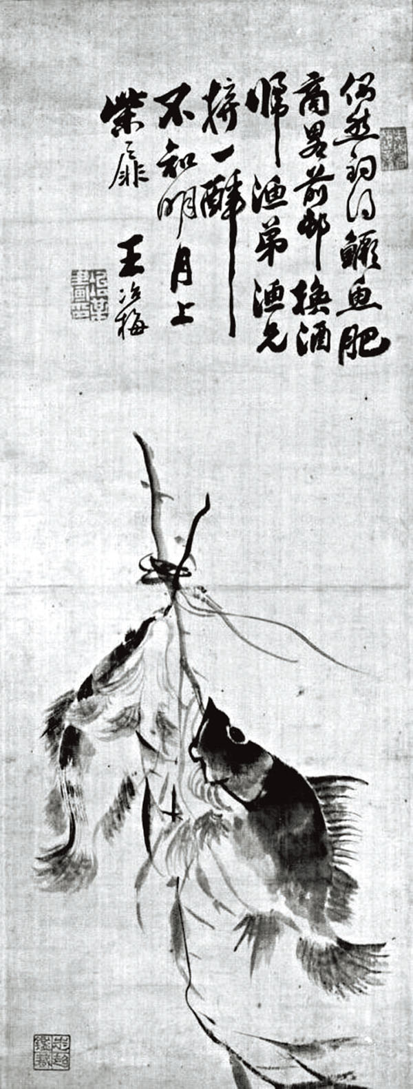 為了吸引海外的新顧客,文人畫特有的創作目的已從表現美好品德轉為裝飾功能。王寅在文人畫的基礎上,將寫實風格融入某些畫作中,並採用了罕有入畫的生活場景。《魚圖》採用淡墨繪製,魚和樹枝的輪廓均以書法性用筆描繪線條,筆觸簡潔,手法寫意,上方題「偶然釣得鱖魚肥,商略前村換酒歸。漁弟漁兄拚一醉,不知明月上柴扉。」從形式上看,這幅作品完全符合文人畫的標準。然而,原本作為精英藝術的文人畫,在王寅筆下趨於世俗。王寅用日常生活來擴展創作題材,讓大眾也能夠欣賞。