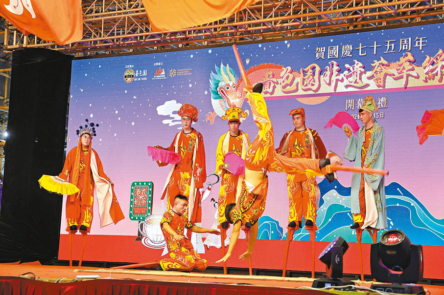 由即日起至10月6日,嗇色園聯同黃大仙民政事務處及非物質文化遺產辦事處,舉辦「賀國慶七十五周年 嗇色園非遺薈萃綵燈節」,正門中式大花牌、園內綵燈亮起,同時亦特意於祠外的廟宇廣場搭建戲棚,以「非遺」為主題,邀請內地及香港超過二十個非遺傳承單位演出,精彩匯演近百場,與民同樂﹔而祠內則設介紹非物質文化遺產的展覽,舉辦多場工作坊及講座,讓市民體驗非遺藝術之美。而且,嗇色園還舉辦連串精彩的非遺表演,當中包括廣東的「陸豐皮影戲」、河北的「雜技」及「高蹺」等,市民可欣賞來自不同省市的表演外,亦可了解祖國深厚的歷史文化底蘊,增加愛國情懷。 ●採、攝︰雨文