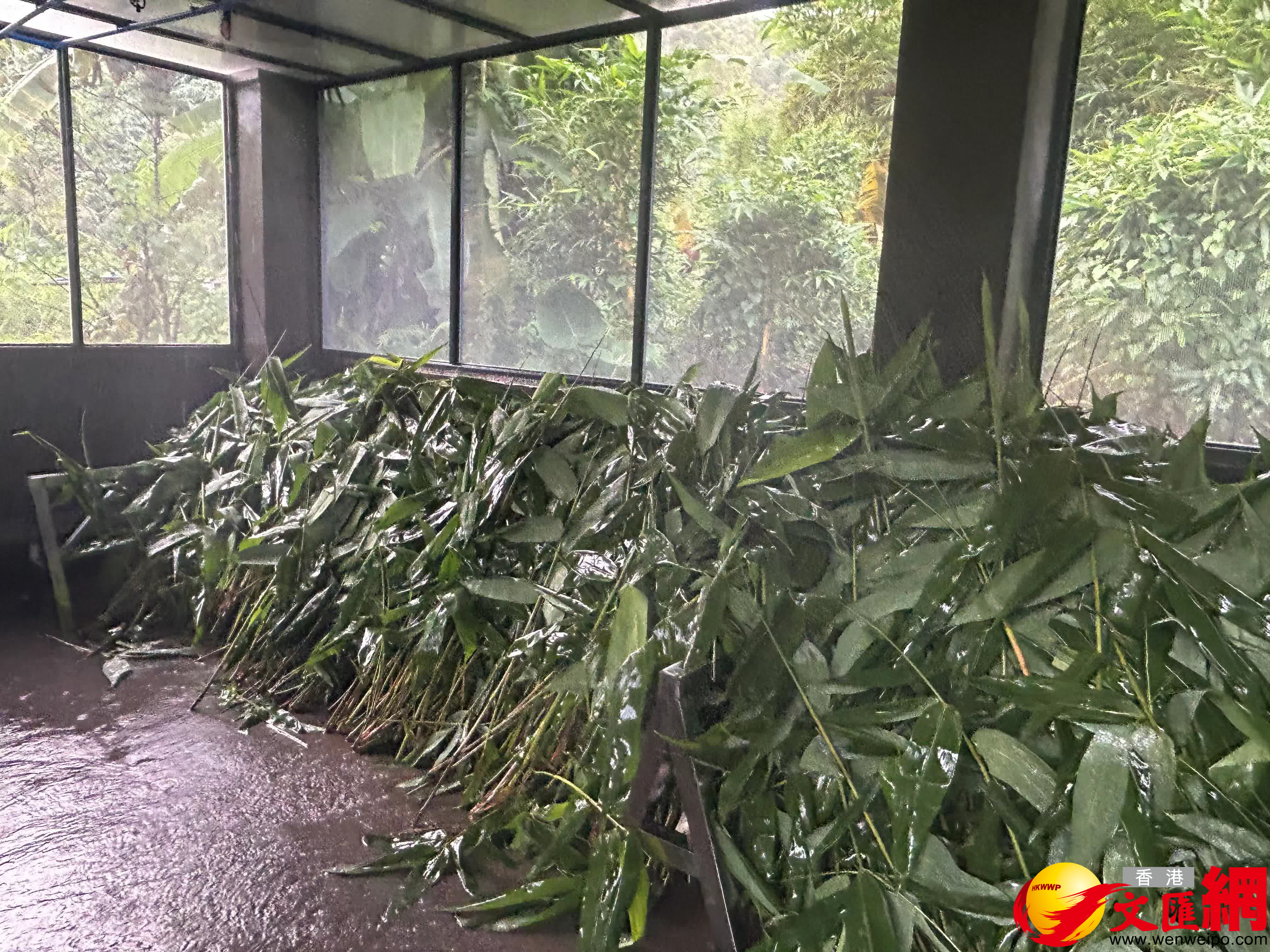 「從竹葉入庫到出庫裝車,設備不停歇給它們淋浴,直到第二天香港的專車前來裝運。這樣的做法,蚊蟲進不來,又鎖住新鮮度。」歐傑棚說。