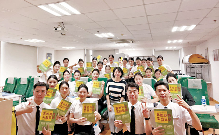 後來因為到了公司退休年齡,以及有關簽證問題的考量,遠藤離開原公司入職了春秋航空,再度成為一位民航人。作為春秋航空培訓中心的教員,遠藤既要負責服務禮儀的指導,也要兼顧日語教學。日本的服務理念格外出名,遠藤在培訓中對於學員服務意識的培養自不必說,「我一直和他們說『用心』才是關鍵。用心與否,在服務過程中,無論是動作還是語言都會有所體現,被服務者也會感受得到。」