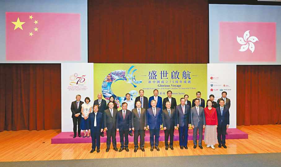 「盛世啟航—新中國成立75周年成就」展覽系列開幕典禮於昨日下午舉行,主禮嘉賓包括卓永興,中央政府駐港聯絡辦副主任尹宗華,中國科學技術協會專職副主席、書記處書記孟慶海,香港特區立法會主席梁君彥,外交部駐港副特派員方建明,特區政府文化體育及旅遊局局長楊潤雄,香港大公文匯傳媒集團董事長李大宏,愛國主義教育工作小組組長李慧琼,博物館諮詢委員會歷史專責委員會主席莫家豪,康文署署長劉明光。