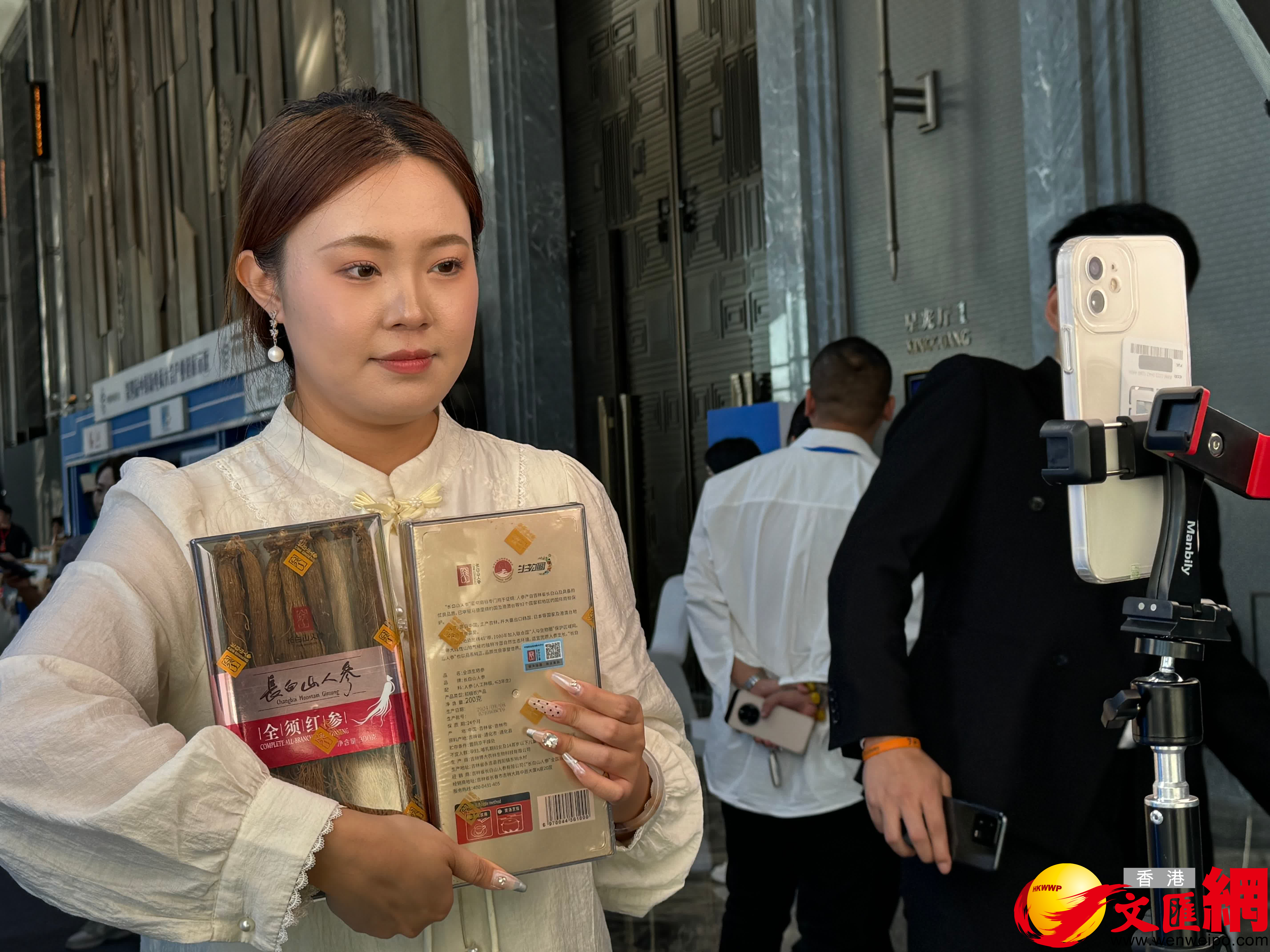 在大會現場吉林人蔘的直播間內,主播李金蔓正熱情洋溢地介紹着長白山人蔘。她介紹:「長白山人蔘之所以能夠贏得市場的青睞,關鍵在於其始終堅持的『三產合一』模式——即擁有自己的種植基地、產品研發中心和線上線下銷售渠道。這種全產業鏈的運營模式,不僅確保了人蔘從種植到銷售的每一個環節都能得到嚴格把控,更讓消費者能夠享受到貨真價實、品質優良的人蔘。」