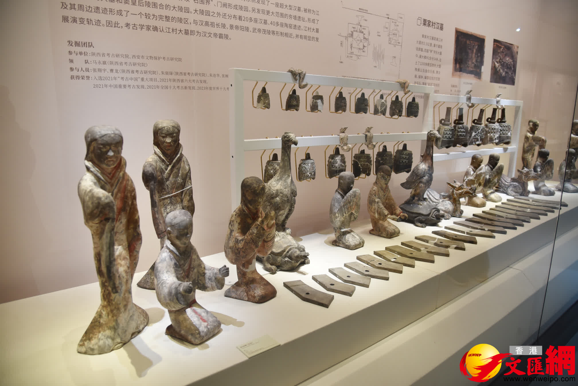 (香港文匯網記者 李陽波 西安報道)斑斕多彩的三彩來通杯,繪有希臘酒神圖案的酒神駝囊駱駝,深邃神秘的仰韶文化彩陶盆,古朴凝重造型典雅的青銅鼎,完整的漢代樂隊,還有來自唐朝婉約如詩、婀娜多姿的「仕女」……9月30日,「探長安——西安市文物保護考古研究院30年考古成果展」在西安博物院開幕。作為西安市文物保護考古研究院建院30年來考古成果的一次集中展示,本次展覽共展出西安地區30餘個重要考古發現出土的280餘件(組)精品文物,其中大部分文物均為首次展出。特別是三彩來通杯等難得一見的珍貴絲路文物,更是一開展便吸引了大量的遊客人前來打卡,備受熱捧。