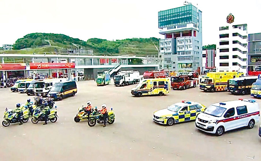 香港文匯報訊(大公文匯全媒體記者 周傾芫)香港特區政府保安局率領轄下紀律部隊和輔助部隊聯合青少年制服團體,昨日在將軍澳消防及救護學院舉辦了一場盛大的慶祝中華人民共和國成立75周年紀律部隊及青少年團體大匯演暨同樂日活動。活動內容豐富多彩,包括升旗禮、匯操表演、青少年團體表演以及紀律部隊和輔助部隊車輛巡遊等環節,並在表演時砌出「75」數字和國旗等圖案,共賀國慶。