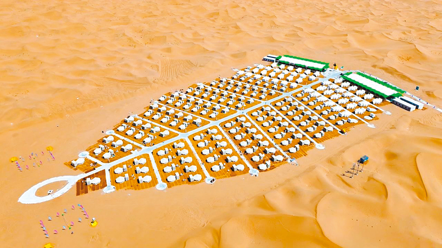 馬婷婷選擇的是景區的「一葉星空帳篷營地」。這個營地有高端帳篷50頂、露營帳篷150頂,是專為年輕人打造集露營DIY、潮流運動於一體的沙漠營地。「營地設計靈感來源於『一花一世界、一葉一菩提』,帳篷也排列組合成葉片的形狀。」景區工作人員表示,營地還推行「管家式服務」,希望能為遊客營造一個青春活力、時尚浪漫的生活空間。