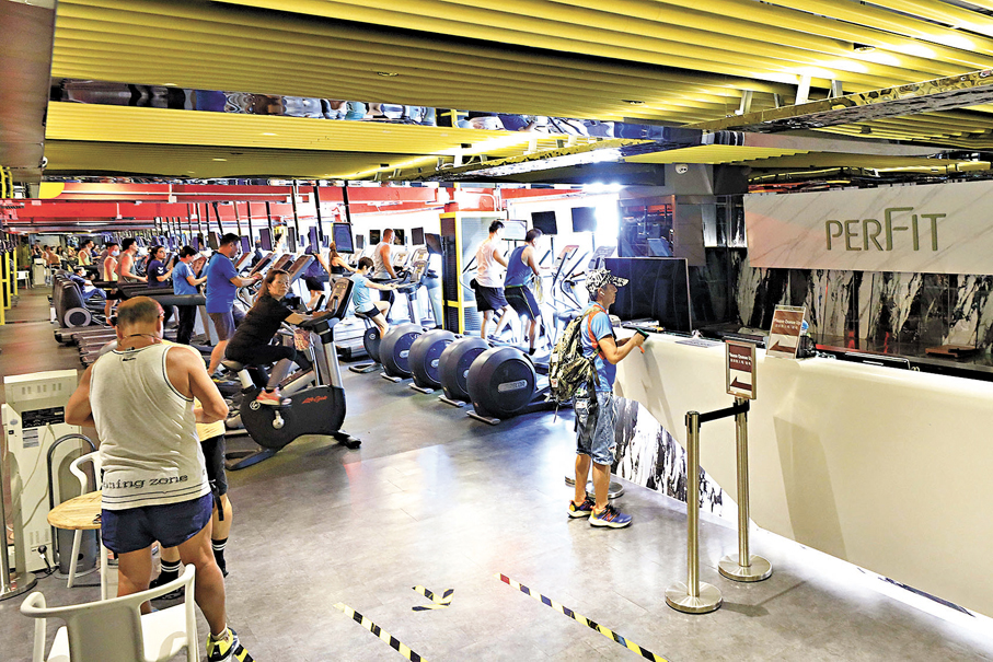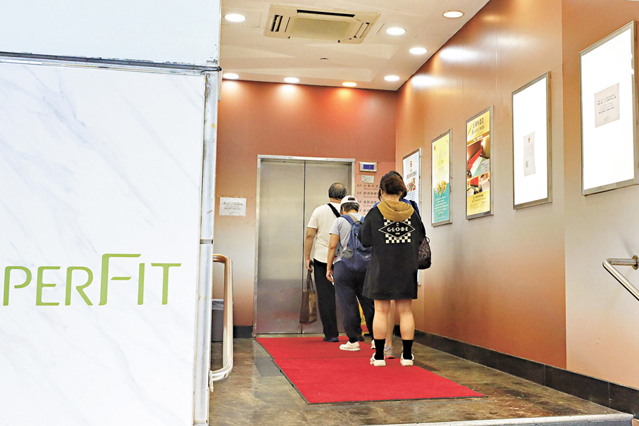 昨日,舒適堡灣仔分店原址大廈外牆仍掛「舒適堡」標誌,香港文匯報記者現場所見,該店如常營業,接待處招牌由原來的「Healthy」字樣改為「perFIT」,告示則寫上營運時間為周一至日朝十晚八,客人如常出入。店內環境頗為擠迫,有20名客人馬上使用健身器材。