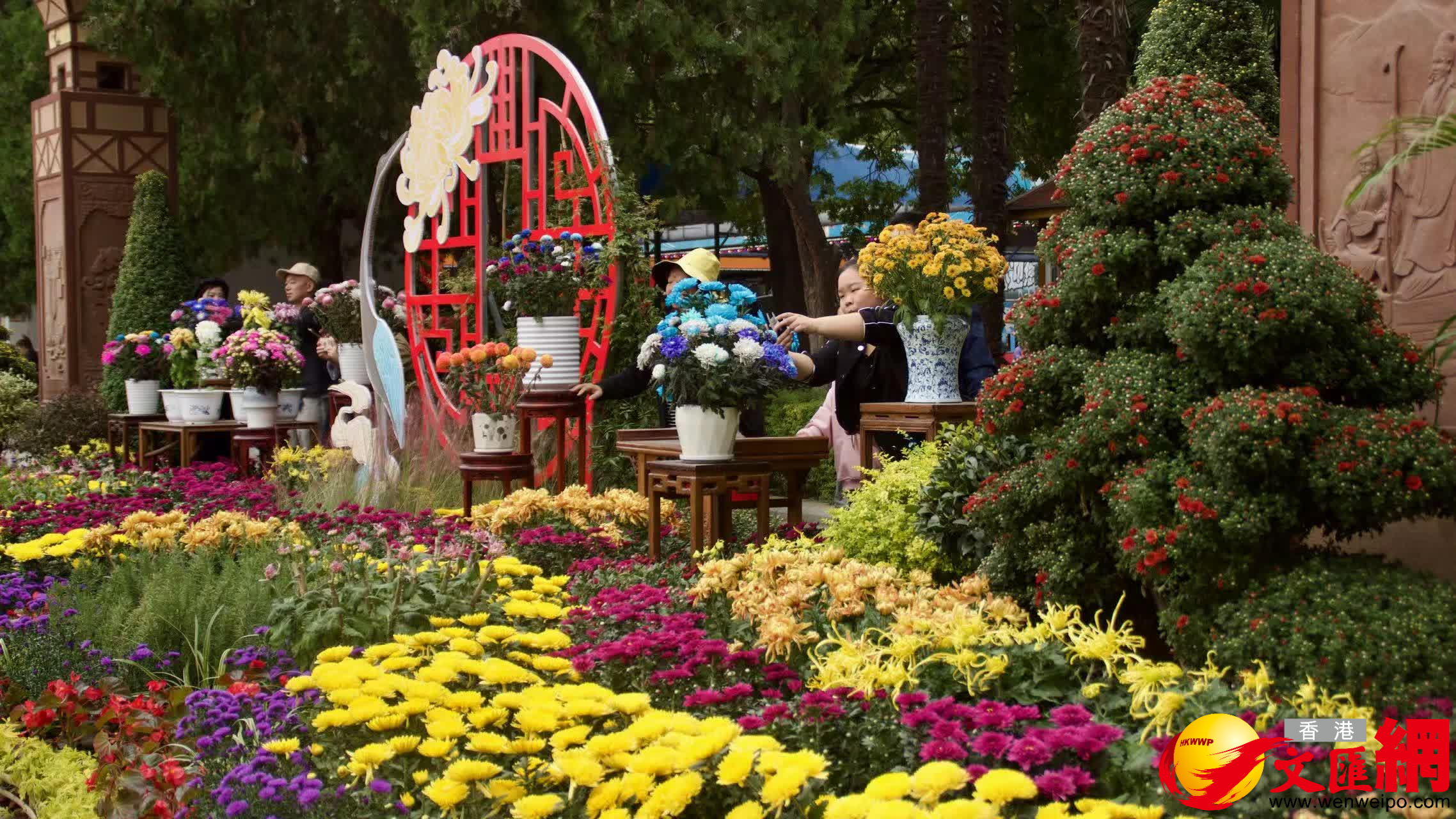 (香港文匯網記者 劉蕊 通訊員 陳雨培 河南報道)國慶假期期間,洛陽第十七屆王城金秋菊展拉開序幕,公園內遊人如織,各類精品菊花亮相,五彩斑斕。今年金秋菊展的主題為「山河錦繡,盛世華夏」,園區專門引進了中國十大名菊,為契合國慶主題公園以10萬餘株各式花草、時令花卉在多個點位進行花境式布置讓遊客一步一景、打卡不停。