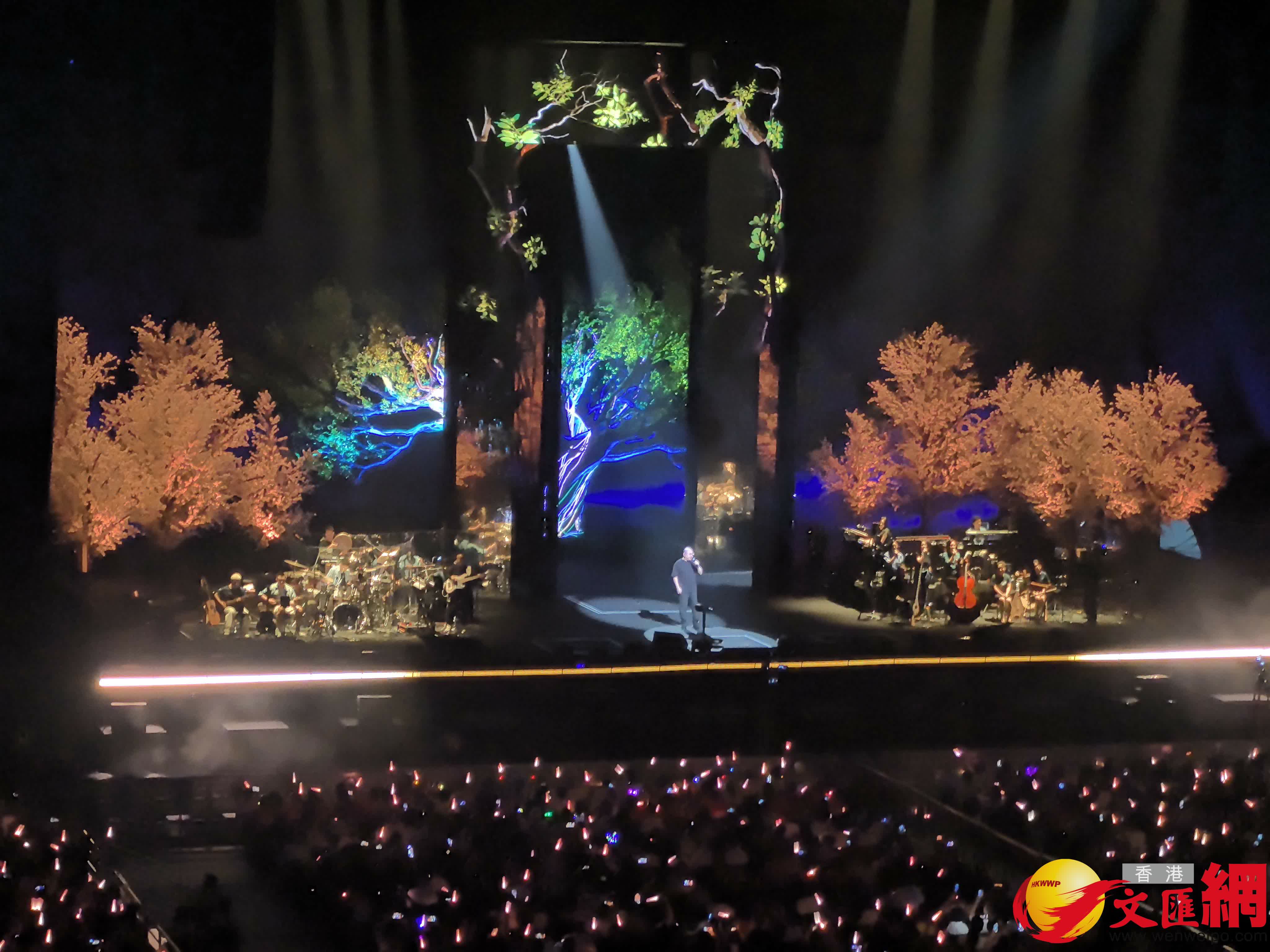(香港文匯網記者胡若璋)越是性情坦蕩的地方,山歌越是響亮,「聽刀郎唱中年生活」成為近期內地視頻類社交平台上的流量「傳輸站」。從5號到6號,接連兩日在廣州寶能國際演藝中心嗨唱,刀郎巡迴演唱會「山歌響起的地方」吸引近4萬人入場。在都市裏唱山歌,刀郎把來自於土地、市井、江河、山水的律動唱到歌迷心裏。他的「山歌」不只是山與歌,也是男與女,是善與惡,是理想與現實。世間百態,總能在刀郎的某一首「山歌」中顯現出來。