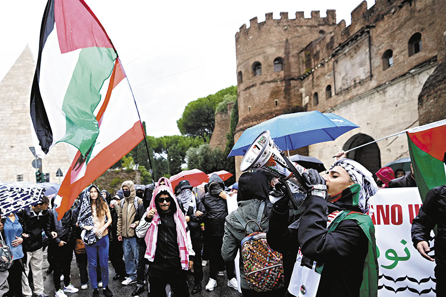 意大利羅馬當局早前以「安全問題」為由,不批准舉行親巴抗議活動,約6,000名抗議者不顧禁令依然走上街頭,高呼以色列是一個犯罪國家等口號。部分身穿黑衣的蒙面示威者向警察掟石,投擲水樽等雜物,警方則向抗議者發射催淚煙並使用水槍,最終驅散人群,至少30名警察和3名示威者受傷。