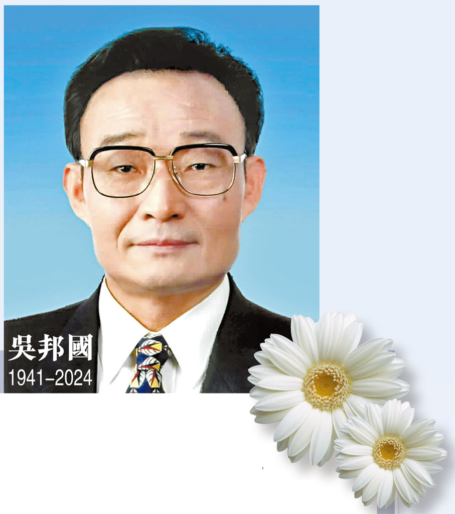 香港文匯報訊 據新華社報道,中國共產黨中央委員會、中華人民共和國全國人民代表大會常務委員會、中華人民共和國國務院、中國人民政治協商會議全國委員會沉痛宣告:中國共產黨的優秀黨員,久經考驗的忠誠的共產主義戰士,傑出的無產階級革命家、政治家,黨和國家的卓越領導人,中國共產黨第十四屆中央政治局委員、中央書記處書記,第十五屆中央政治局委員,第十六屆、十七屆中央政治局常委,國務院原副總理,第十屆、十一屆全國人民代表大會常務委員會委員長吳邦國同志,因病醫治無效,於2024年10月8日4時36分在北京逝世,享年84歲。