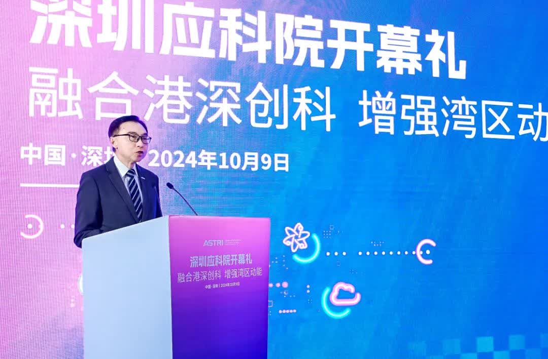 (香港文匯網記者 胡永愛)10月9日,香港應用科技研究院(簡稱「香港應科院」)全資子公司應科院科技研究(深圳)有限公司(簡稱「深圳應科院」)在河套深圳園區揭牌,標誌着香港應科院進一步拓展內地業務,推動粵港澳大灣區科技創新合作。「我們將充分發揮港深兩地各自的優勢,共同推動大灣區國際科創中心的建設並提升其國際影響力,實現協同創新和高質量發展。」香港應科院董事局主席李惠光表示。