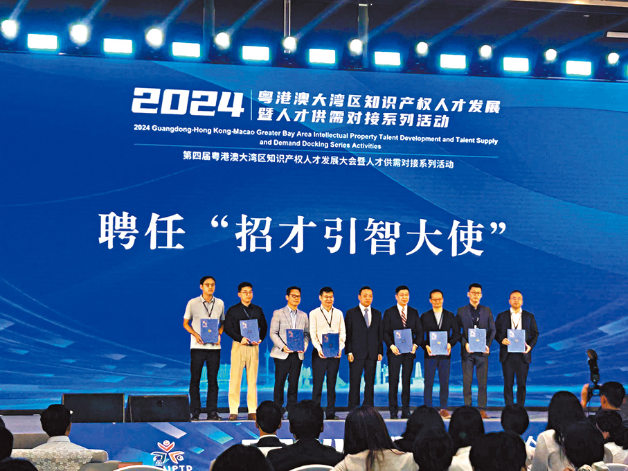 香港文匯報訊(記者 敖敏輝 廣州報道)11日,由廣東省市場監管局(知識產權局)、香港知識產權署、澳門經濟及科技局共同主辦的2024年粵港澳大灣區知識產權人才發展大會暨人才供需對接系列活動在中新廣州知識城舉行,活動旨在推動粵港澳大灣區人才自由流通,促進大灣區知識產權服務業的快速持續發展。業界指出,粵港澳大灣區加速推進國際科創中心建設,知識產權人才需求非常旺盛,但當前存在高素質和複合型知識產權人才不足、科研機構成果轉化人才數量與科研隊伍不匹配、高校知識產權人才培養模式亟待升級轉型等問題。專家建議,接下來要進一步推動大灣區知識產權領域互聯互通,在人才的便利往來、執業以及人才培養模式等方面進行創新探索。