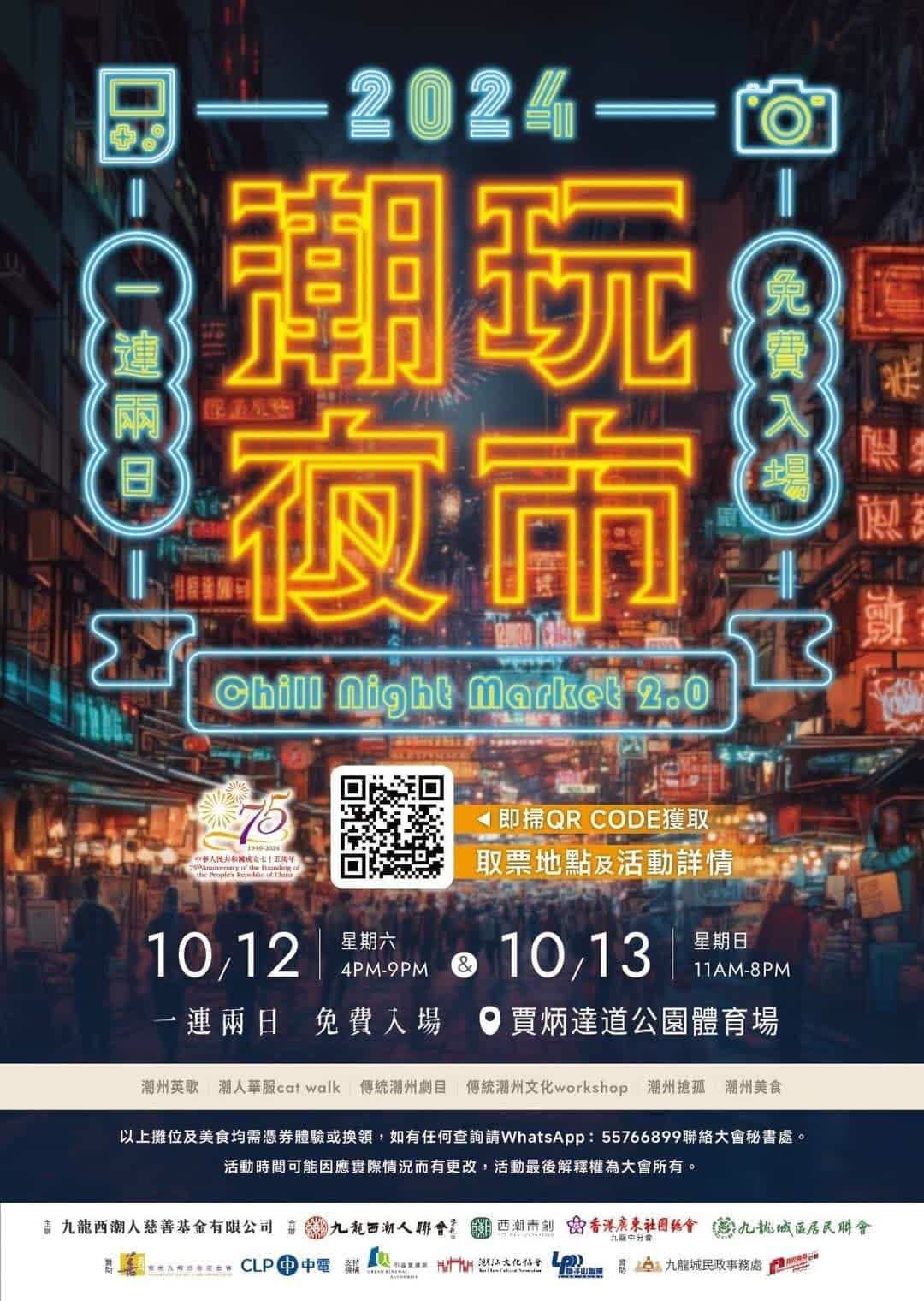 九龍西潮人聯會、九龍城區居民聯會等合辦潮玩夜市。九龍西潮人聯會會長陳欣耀指,傳統文化的弘揚與推廣需與時並進,期望活動讓市民接觸、及了解更多潮汕文化,亦讓潮汕藉人士感受家鄉風土人情。