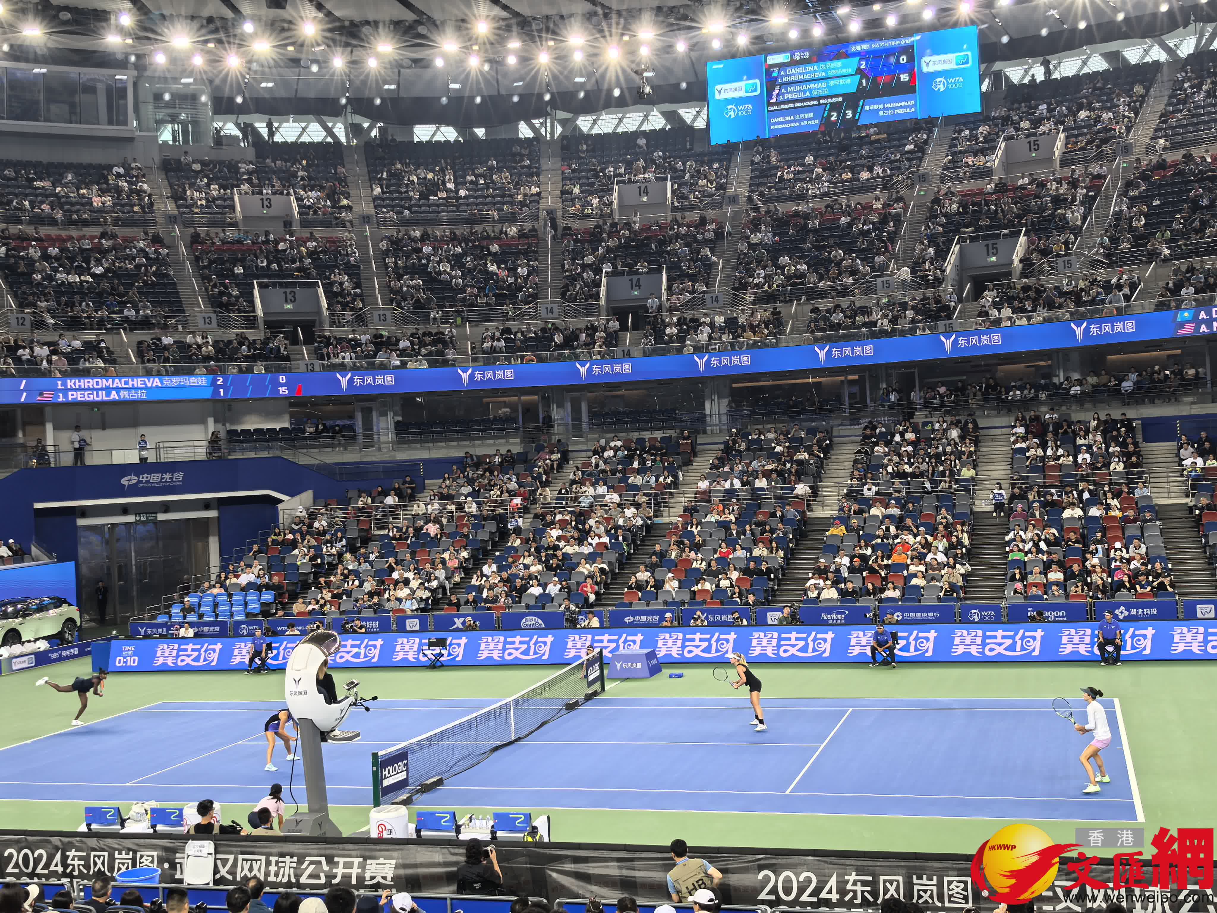 (香港文匯網記者 張帥 武漢報道)在10月13日下午舉行的2024年WTA武漢網球公開賽女雙決賽中,達尼麗娜/克羅瑪查娃組合以6-3、7-6擊敗穆罕默德/佩古拉組合,獲得武網女雙冠軍。