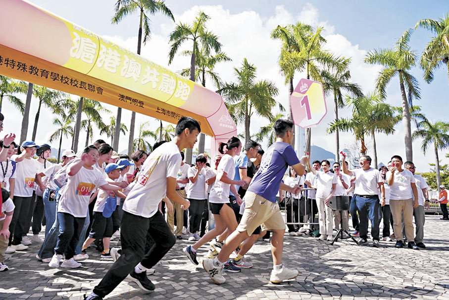 香港文匯報訊 特殊教育(SEN)是深化教育工作重要的一環。來自上海、香港、澳門的逾百位SEN學童昨日參與「滬港澳共融跑」活動,在尖沙咀維港畔奔跑前進,共慶國慶75周年。特區政府政務司副司長卓永興在活動上致辭表示,「共融跑」不僅是一場體育活動,更是一次國民教育的體驗,他冀參加的同學努力學習,多認識國家,以身為中國人感到自豪,長大後為國家和香港的發展作出貢獻。