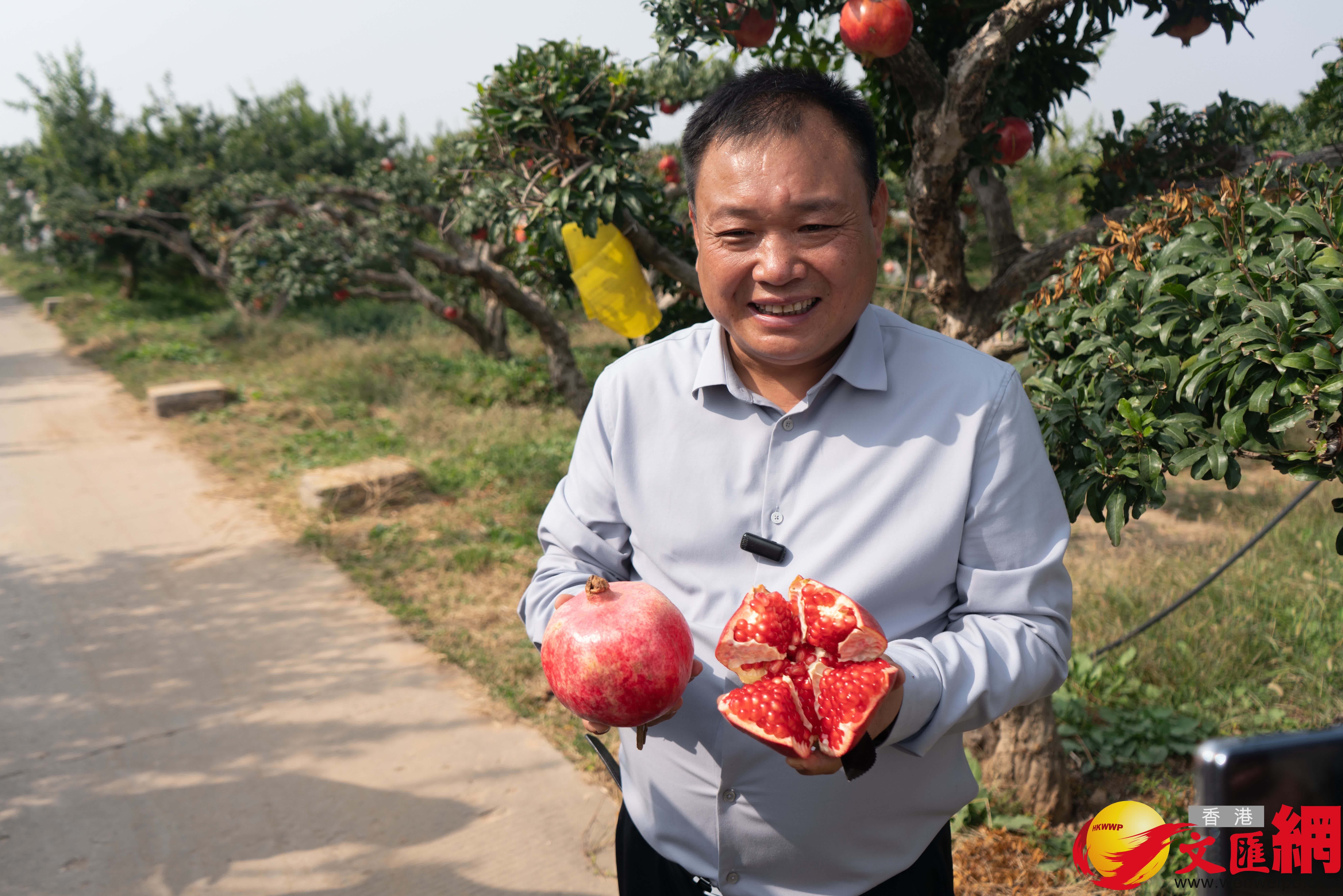 (香港文匯網記者李陽波、實習記者豆潔西安報道)金秋時節,榴果飄香,西安臨潼驪山腳下成片的石榴園迎來豐收季節,臨潼石榴也進入市場銷售旺季。記者從10月16日舉行的西安臨潼石榴主題推介活動上獲悉,截至目前,西安臨潼石榴種植面積共8萬餘畝,年產優質石榴8萬餘噸,年產值超過5億元(人民幣,下同)。同時,依託石榴產業,西安市臨潼區亦積極發展鄉村旅遊和觀光農業,為遊客提供望山見水憶鄉愁、養顏洗肺伸懶腰的好去處,千年石榴產業煥發新彩。