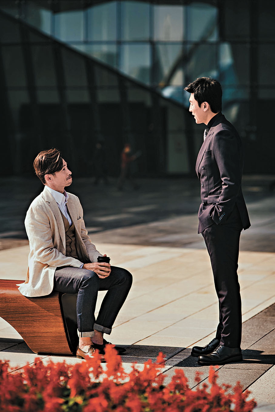 劇中阿Shaun跟陳豪(阿Mo)飾演的企業家角色趙愷,雙方做生意的理念完全不同,當中產生不少矛盾。對於有說今次是兩大「視帝」對決?阿Shaun並不認同:「我覺得係兩個『奶爸』,阿Mo好sweet,佢現在所有精神及時間都放在家庭上,我覺得同佢好似,除咗休息,所有時間都放喺屋企。」兩個奶爸一碰頭就有很多話題,除了演戲、家庭及小朋友的教育外,大家的嗜好亦很接近,對電子產品都很有興趣,就連龔嘉欣都插不到嘴,他也趁機叫對方早日生個B。不過他與嘉欣同樣開食店,大家也有交流生意經。