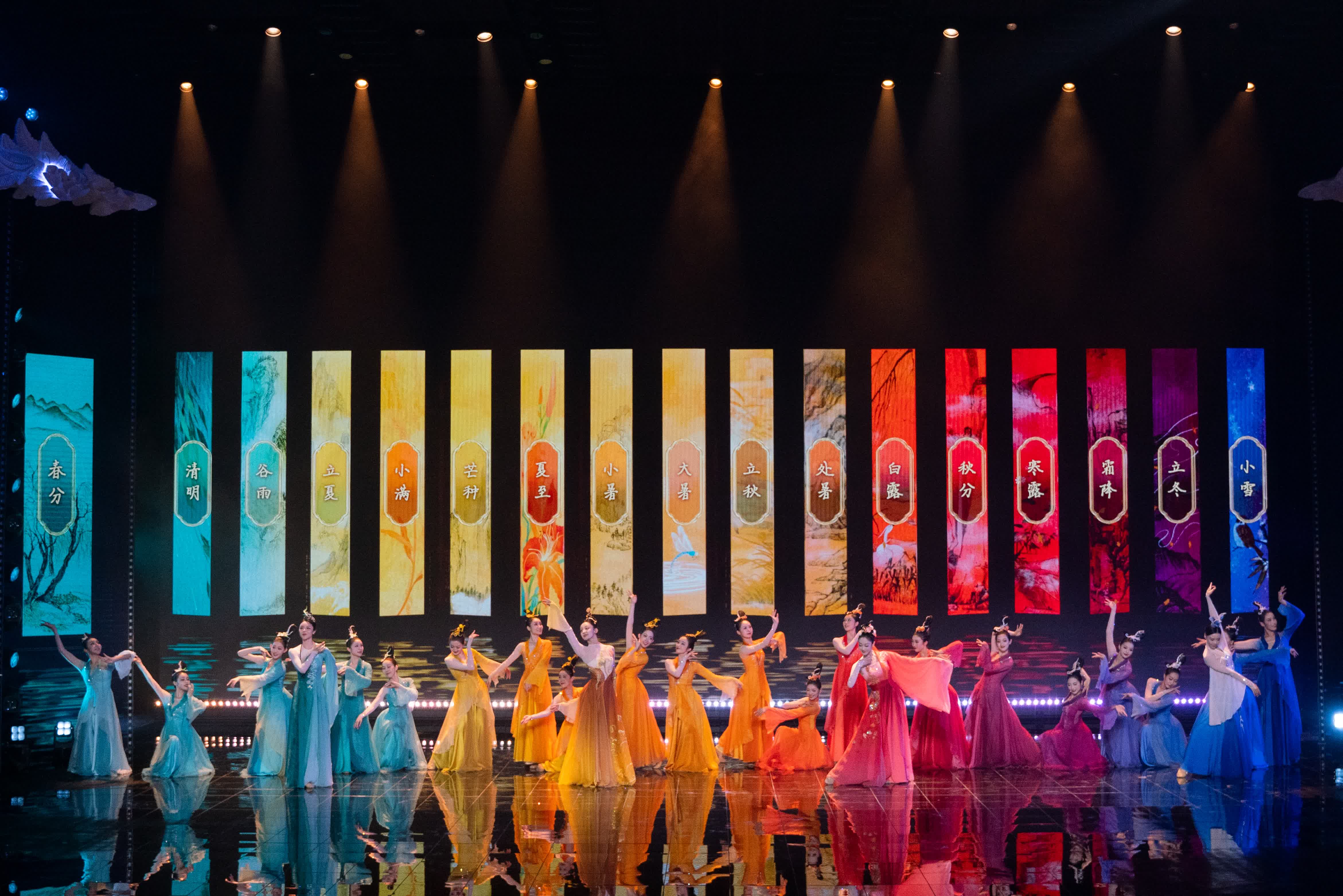 女性舞者們通過細膩柔美的肢體語言和靈動躍動的舞台表現力,不僅勾勒出一幅幅四季更迭、節氣輪轉的壯麗畫卷,更深刻挖掘並傳達了每個節氣背後蘊含的文化意義與自然界的微妙變化。整部作品不僅是一場視覺與感官的盛宴,更是一次心靈的洗禮,讓觀眾在欣賞舞蹈之美的同時,深刻感受到中國二十四節氣所蘊含的深厚文化底蘊與自然界的無限魅力。