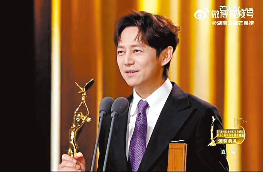 由中國文學藝術界聯合會、湖南省人民政府、中國電視藝術家協會聯合主辦的第32屆中國電視金鷹獎暨第15屆中國金鷹電視藝術節頒獎晚會20日晚在長沙舉行,晚會現場星光熠熠,各大獎項揭曉。《漫長的季節》男主角范偉、《風吹半夏》女主角趙麗穎分獲最佳男、女主角。電視劇《三體》奪得最佳導演、最佳電視劇兩項大獎。●香港文匯報記者姚進 長沙報道 圖片:網上截圖