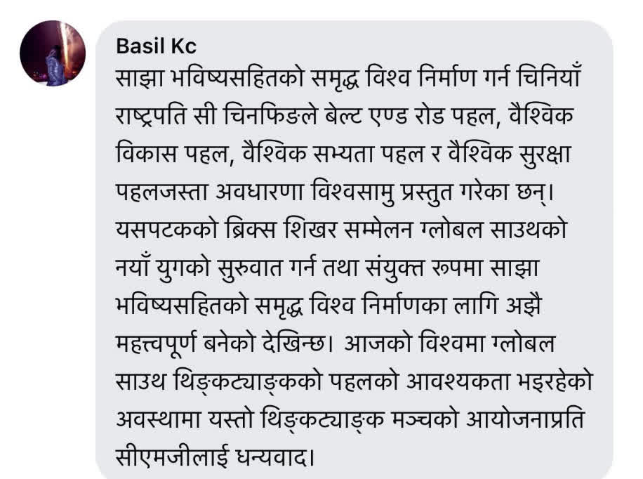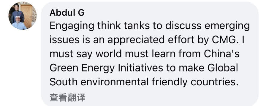 海外網友,點讚論壇。巴基斯坦網友@Audul G為總台論壇點讚,「CMG邀請智庫討論新興問題的舉措值得讚賞。我必須說,世界必須學習中國的綠色能源倡議,讓全球南方國家成為環境友好型國家。」尼泊爾網友@Basil Kc留言,「為構建繁榮世界、人類命運共同體,中國國家主席習近平向世界提出共建『一帶一路』倡議、全球發展倡議、全球安全倡議、全球文明倡議等理念。這次金磚國家領導人會晤對於開啟全球南方新時代、共同建設繁榮世界非常重要。感謝CMG在此之際組織這樣一個智庫論壇。」