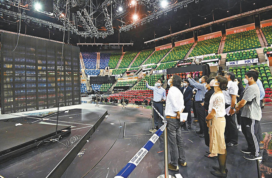 男團MIRROR前年7月28日紅館演唱會墜屏事故,工程總承辦商藝能工程3名職員涉嫌串謀虛報懸掛設備重量案,昨日在區域法院續審,控方傳召演唱會導演鄭宇軒作供。鄭供稱原打算採用12塊LED屏幕,以呼應MIRROR的12位成員組合,但藝能指「吊天器材已經太重啦」,最終減半為6塊,次被告其後致電指掛6塊屏幕「OK」。演唱會的舞台設計師則供稱,減少屏幕數目後曾開會提及重量問題,會上有人估算每個屏幕連框架重500公斤。她確認屏幕、框架等組件的重量,是由藝能以外的兩間公司提供。 ●香港文匯報記者 葛婷