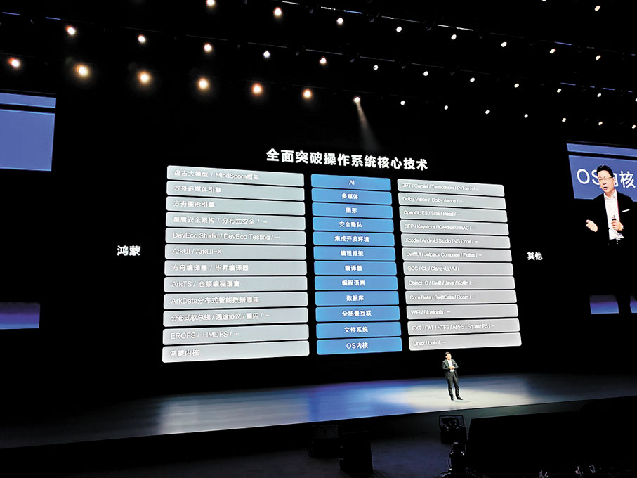 在昨晚的「原生鴻蒙之夜暨華為全場景新品發布會」上,備受期待的原生鴻蒙操作系統HarmonyOS NEXT(又稱HarmonyOS 5.0 或純血鴻蒙)正式推出,這是內地首個國產移動操作系統,也是繼蘋果iOS和安卓系統後,全球第三大移動操作系統。標誌着華為在移動操作系統領域取得了重大突破,實現操作系統的自主可控。新發布的系統首次融入原生AI能力,用戶「碰一碰」即可分享圖片和淘寶鏈接等。同日,純血鴻蒙將開啟華為Pura 70系列、華為Pocket 2系列和華為MatePad Pro 11吋2024款三款設備公測。