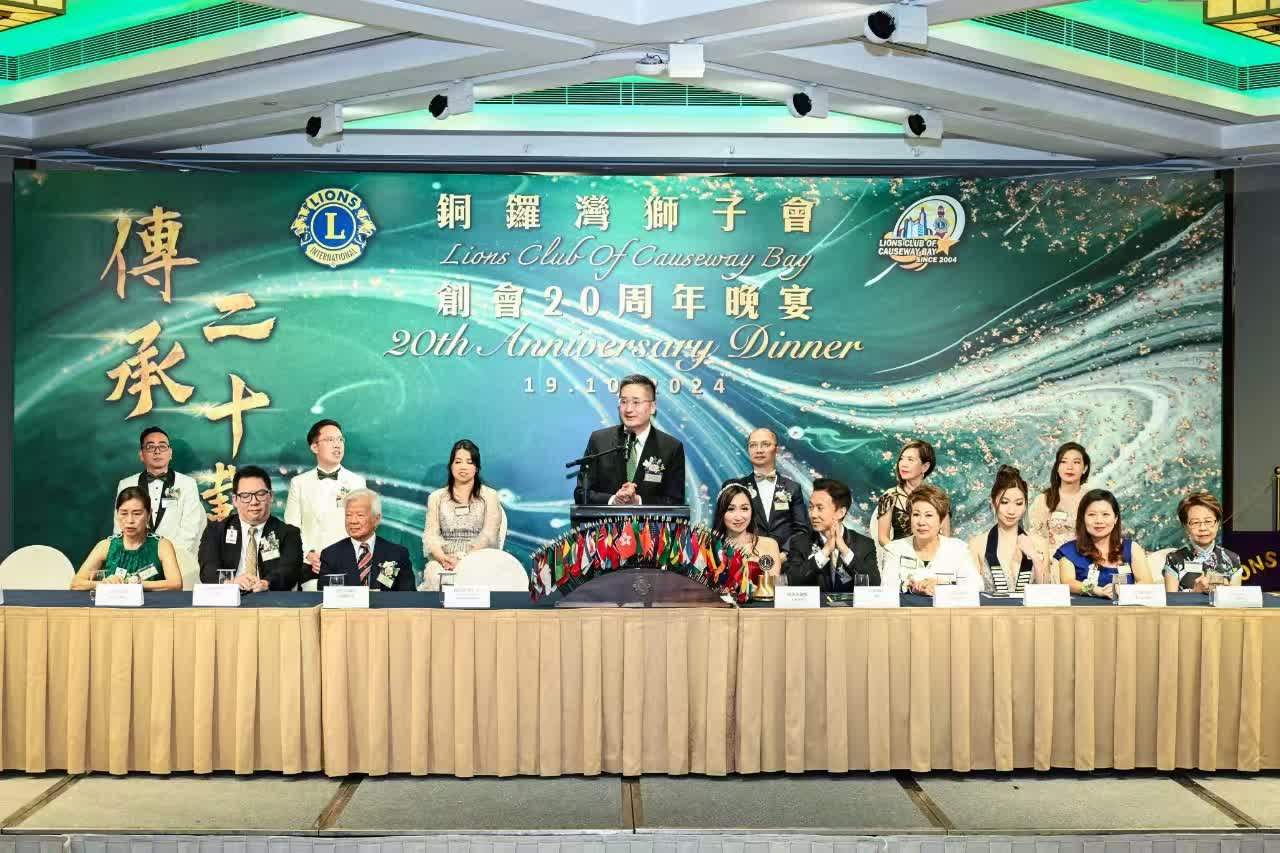 日前,國際獅子會中國港澳303區(簡稱:獅子會303區)10多位現任總監及前總監、20多位現任區職員、30多位現任屬會會長、200多名社會各界來賓齊聚慶賀銅鑼灣獅子會創會20周年。主禮嘉賓包括:香港商務及經濟發展局副局長陳百里,大會主席陳惠美,總監沈顏,會長鍾淑芳,第一副總監梁鳳華,第二副總監袁秀齡,銅鑼灣獅子會創會總監楊偉誠等。陳百里鼓勵銅鑼灣獅子會以及來賓們對香港未來經濟發展充滿信心。