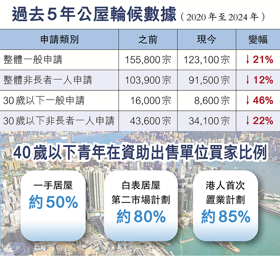 申請一人公屋青年跌22%