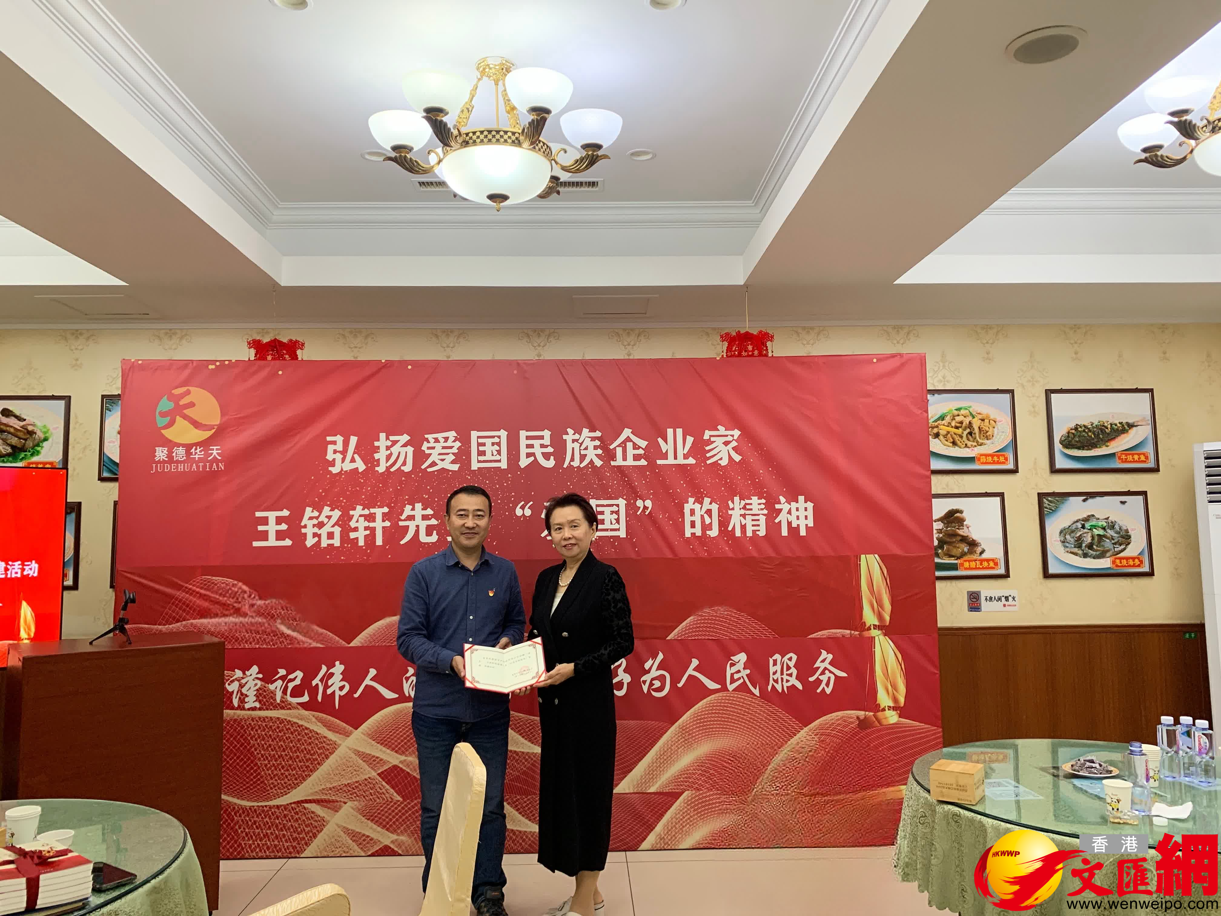 (香港文匯網記者凱雷 李暢 實習記者鄒婧兮 北京報道)弘揚愛國民族企業家王銘軒愛國精神暨西安飯莊創建70年紀念活動日前在北京舉行。西安飯莊原名西安食堂,是王銘軒於1954年創辦的。在紀念活動中,王銘軒親屬代表宋英向聚德華天公司、藍田職業教育學校等單位捐贈《追求——王銘軒的故事》和《從追求到傳承》等書籍。