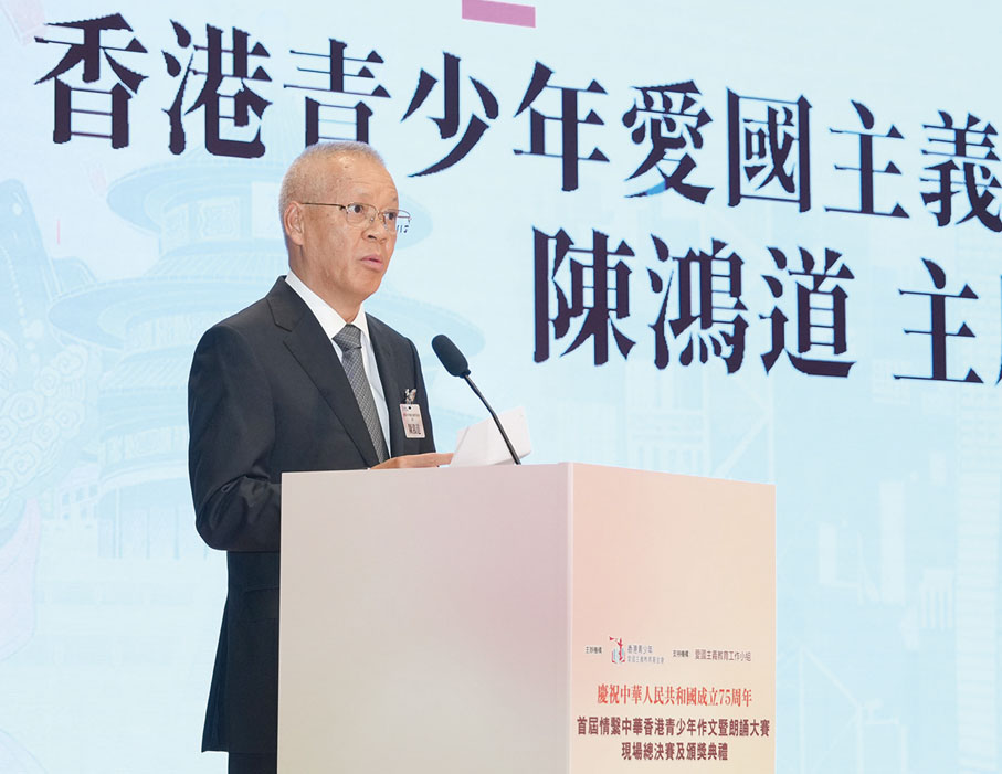 政務司司長陳國基在致辭中表示,今次比賽提供了一個寶貴的機會,讓同學們透過寫作和朗誦,表達對國家和民族的熱愛,弘揚傳統中華文化,培養同學的愛國情懷。他感謝主辦方「香港青少年愛國主義教育基金會」,以及各協辦、支持機構,讓同學們透過比賽,發揮所長,抒發愛國情懷。他表示,期待與基金會、各中小學校、老師和家長,以及社會各界攜手合作,培育更多愛國愛港、具備世界視野,有抱負和正向思維的新一代,為全面推進強國建設、民族復興的偉大事業出一分力。