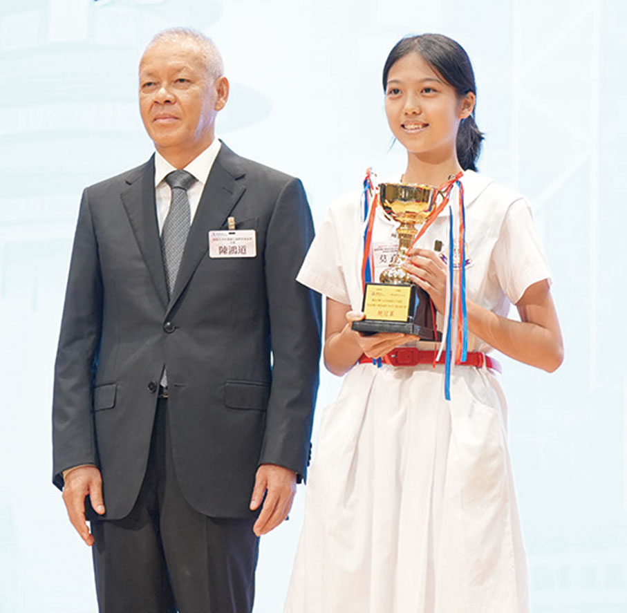 基金會主席陳鴻道在致辭時表示,引導廣大青少年樹立國家意識、厚植家國情懷,關乎國家的復興大業和民族的未來。同學們作文中流露出的身份認同感、民族自豪感以及所展現出的濃厚文化自信,令人感到由衷的欣慰與振奮。這種真摯的情感與堅定的自信,不僅體現了香港年輕一代對於傳承中華文化、發揚民族精神的強烈使命感,同時也展現了他們面向未來、滿懷希望與信念的精神風貌,香港新一代正以積極向上的態度,續寫中華文明的新篇章。