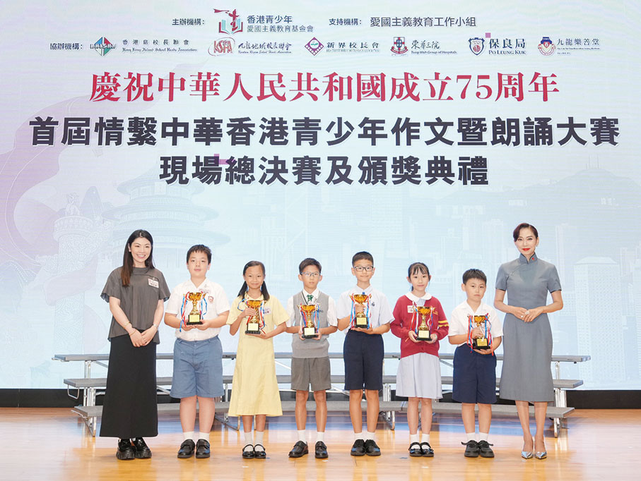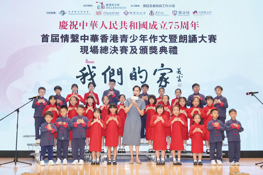為慶祝中華人民共和國75周年華誕,增進香港青少年對國家及民族的歸屬感和認同感,香港青少年愛國主義教育基金會(以下簡稱「基金會」)發起主辦「首届情繫中華香港青少年作文暨朗誦大賽」,並於10月27日正式舉辦現場總決賽及頒獎典禮。香港特別行政區政府政務司司長陳國基,全國人大常委會委員、愛國主義教育工作小組組長李慧琼,政制及內地事務局副局長胡健民,中央政府駐港聯絡辦青年工作部副部長萬寧,基金會主席陳鴻道,全國人大代表、基金會常務副主席文頴怡,基金會常務副主席譚鎮國、何芷韻,以及全國人大代表、愛國主義教育工作小組委員鄺美雲,全國人大代表黃冰芬,愛國主義教育工作小組委員蔡德昇、李鑾輝,新界校長會主席朱偉林以及協辦機構代表、參賽學生、學校代表及媒體嘉賓等近500人出席活動。