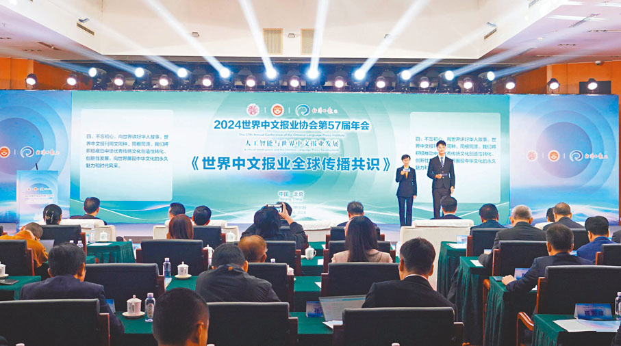 香港文匯報訊(記者 葛沖、李暢、蘇雨潤 北京報道)世界中文報業協會第57屆年會10月30日在北京開幕。本屆年會以「人工智能與世界中文報業發展」為主題,來自中國及世界各地的中文媒體負責人和智庫學者等100多名嘉賓參會。與會嘉賓認為,當今世界進入新的動盪變革期,國際形勢日趨複雜,世界中文報業面臨新的機遇、挑戰和變局。信息技術特別是生成式人工智能在傳播領域的應用,催生信息生產方式、傳播形式、消費模式的深刻變化。面對新的形勢,只有正確識變、主動應變、科學求變,才能順應時代發展、適應傳播生態、回應現實需要。