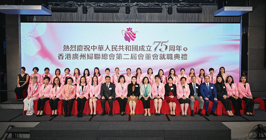 香港廣州婦聯總會日前(10月21日)假尖沙咀Hotel ICON唯港薈隆重舉辦「熱烈慶祝中華人民共和國成立75周年暨香港廣州婦聯總會第二届會董會就職典禮」,香港特區政府民政及青年事務局局長麥美娟,廣州市婦女聯合會主席龔紅,中央政府駐港聯絡辦協調部副部長李玲,廣州市委統戰部副部長、一級巡視員劉國強,全國人大代表、立法會議員陳曼琪,全國政協委員顏寳玲、蔡黃玲玲,香港廣州社團總會主席張廣軍,立法會議員葛珮帆等應邀出席並主禮,場面溫馨熱鬧。