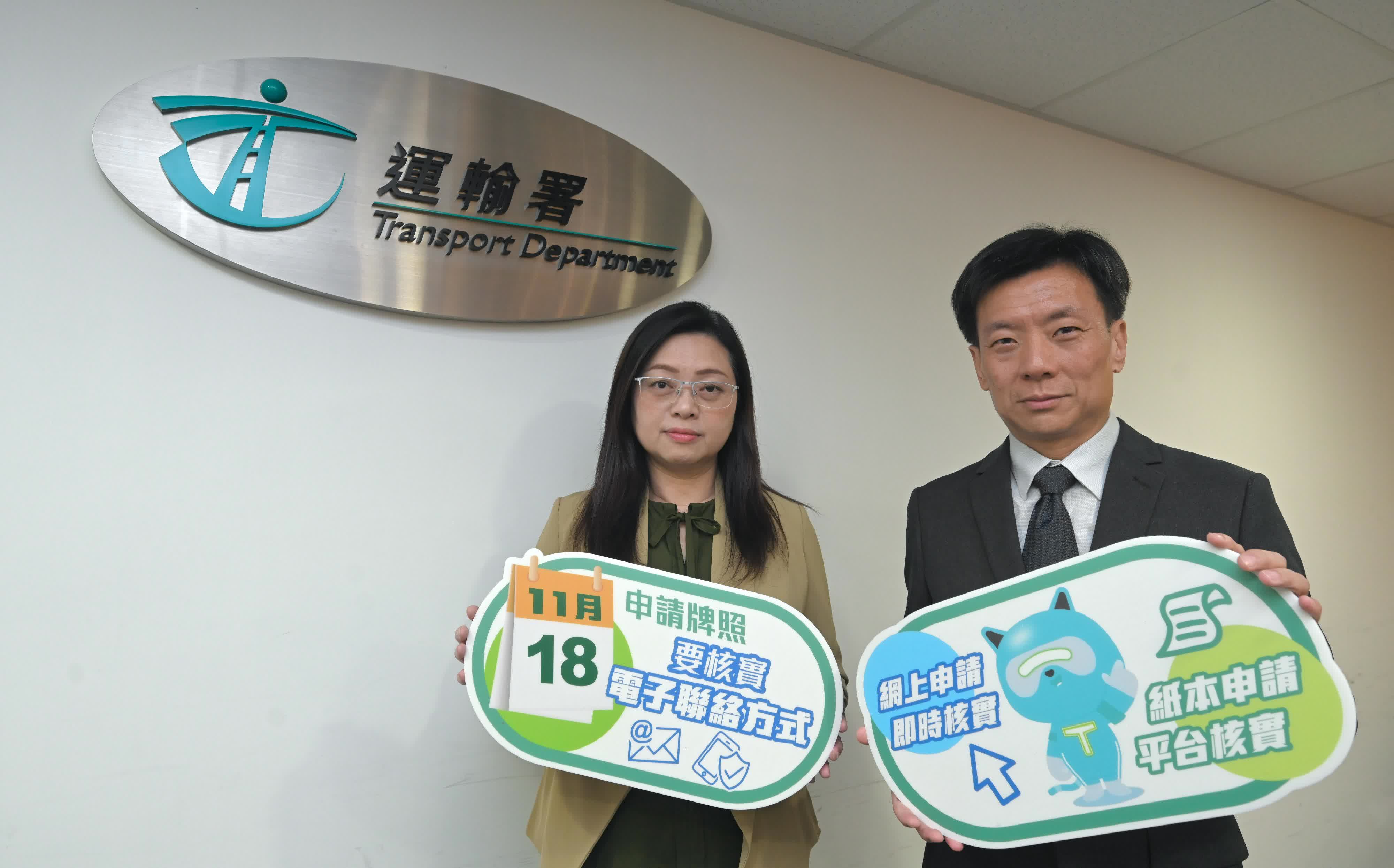 運輸署今日(11月1日)提醒市民,由今年11月18日起,新申請駕駛執照和車輛牌照等21項牌照或續牌時,須提供和核實香港流動電話號碼或電郵地址作為電子聯絡方式,以在未來接收香港警務處和運輸署的電子訊息,為2025年上半年逐步推行電子交通執法做好準備。