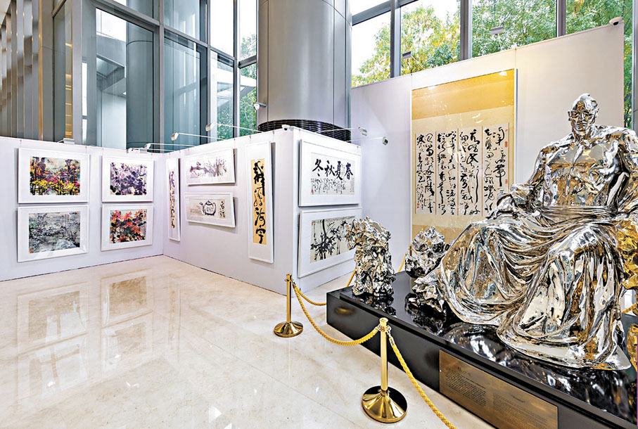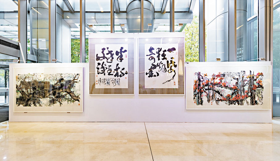 日前(11月1日),由香江國際集團主辦的「東方意象——岑文濤書畫作品展」在北京財富中心揭幕。透過70餘幅書畫作品,觀眾可以充分領略香港著名藝術家岑文濤先生的創作特色和風格旨趣。這次展覽由88歲的香江國際集團董事長楊孫西博士策劃,展覽將持續至11月15日。作為香港中國書畫會會長,岑文濤的創作集詩詞、楹聯、書法、繪畫於一體,彰顯出厚重的傳統文化底蘊,其作品在海內外亦享有盛譽。岑文濤的書法師承麥華三教授,作品風格多樣,狂草氣勢磅礡,隸書沉穩大氣,篆書意象清奇,楷書嚴謹靜穆,均能自成一格;其畫作師承李苦禪大師,作品既凝聚歷史傳統,又煥發時代激情,不遷就大眾喜好,始終堅持自己的藝術追求。 ●文、圖︰香港文匯報記者 張寶峰 北京報道