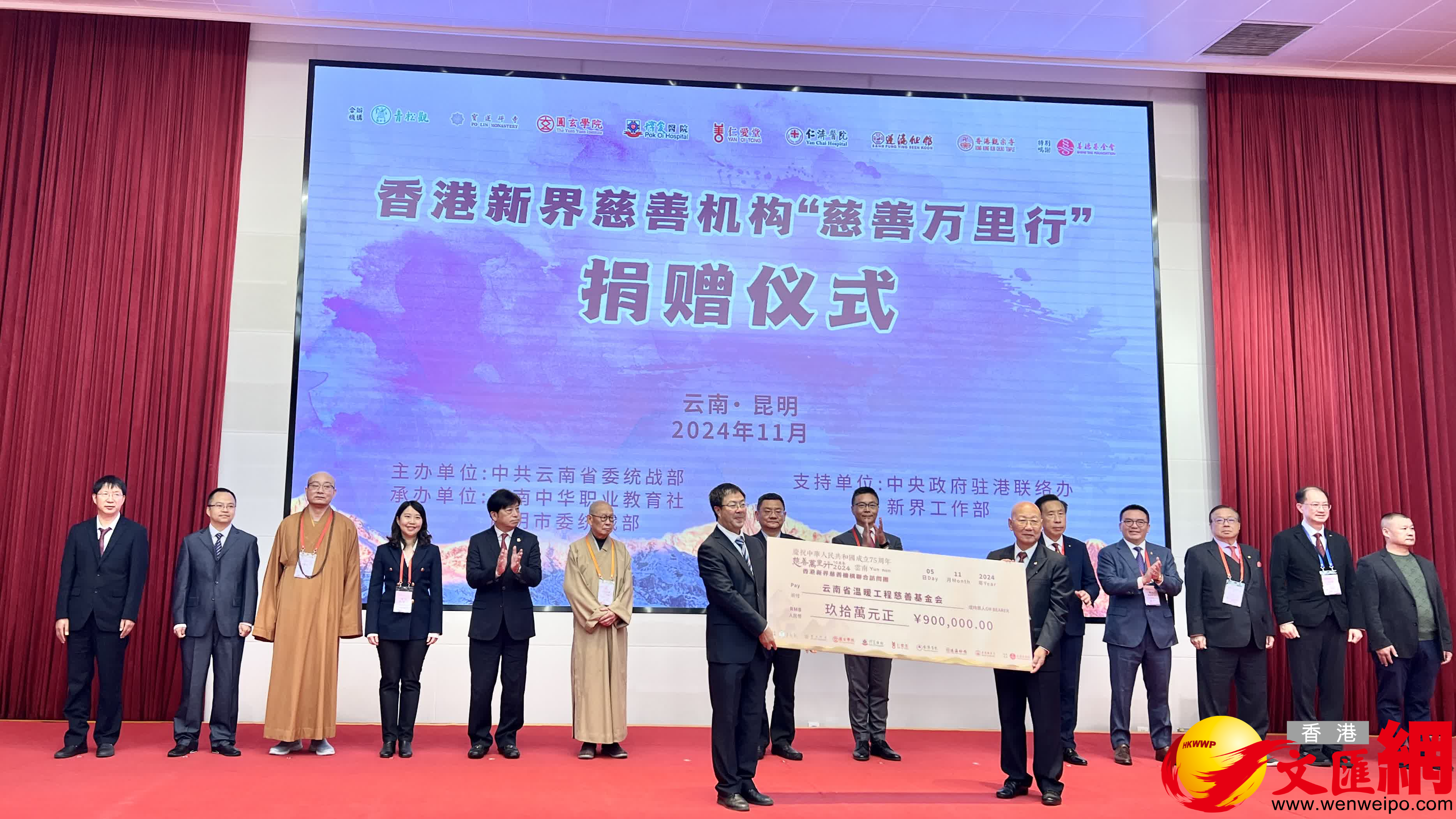 (香港文匯網記者 譚旻煦)香港新界慈善機構「慈善萬里行」公益捐款儀式5日在雲南昆明舉行,來自香港新界的慈善團體此行共捐贈善款90萬元(人民幣),用於雲南祿勸、香格里拉的學校和衞生院改善基礎設施以及添置設備,助力提升當地基礎教育質量和醫療衞生服務水平。