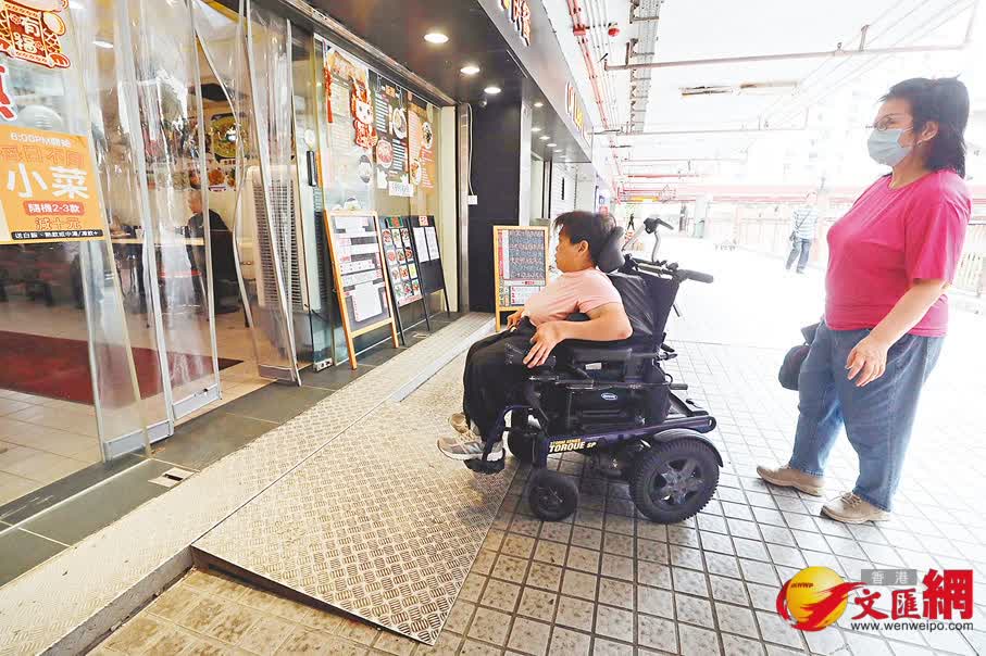 (香港文匯報記者 廣濟)店舖門前一級小小的石階,對輪椅人士而言,形同是阻隔他們融入社區的高牆。巴黎殘奧硬地滾球雙金得主香港運動員何宛淇近日在社交平台發文分享,指自己光顧銅鑼灣一間泰國菜餐廳時,被「沒有輪椅位置」、「阻人行」等理由被拒諸門外。她的遭遇是不少輪椅人士的寫照,香港文匯報實測發現,十間食肆5間沒有無障礙設施,兩間的職員更狀似「不接待」輪椅人士。居住在舊式屋邨的輪椅人士楊小姐卻不認命,花費十年的時間,向邨內食肆逐一發信要求設立斜板上落,最後在平機會和議員的協助下,逐步改善屋邨及附近無障礙設施。她希望,商界與特區政府攜手打造共融社區。