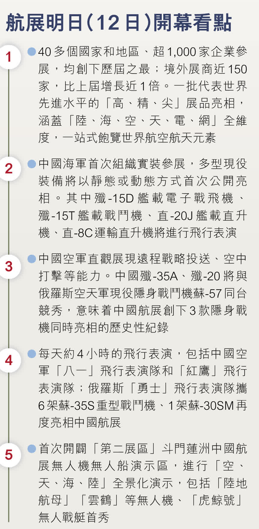 航展明日(12日)開幕看點