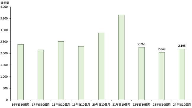 (香港文匯報記者 黎梓田)香港置業研究部董事王品弟表示,據土地註冊處資料顯示,今年首10個月二手住宅(包括二手私人住宅及二手公營房屋)錄33,110宗註冊,較去年同期的31,912宗增加約3.8%;當中十大傳統屋苑今年首10個月錄2,195宗註冊,較去年同期的2,049宗增加約7.1%,按年同期表現跑贏大市。