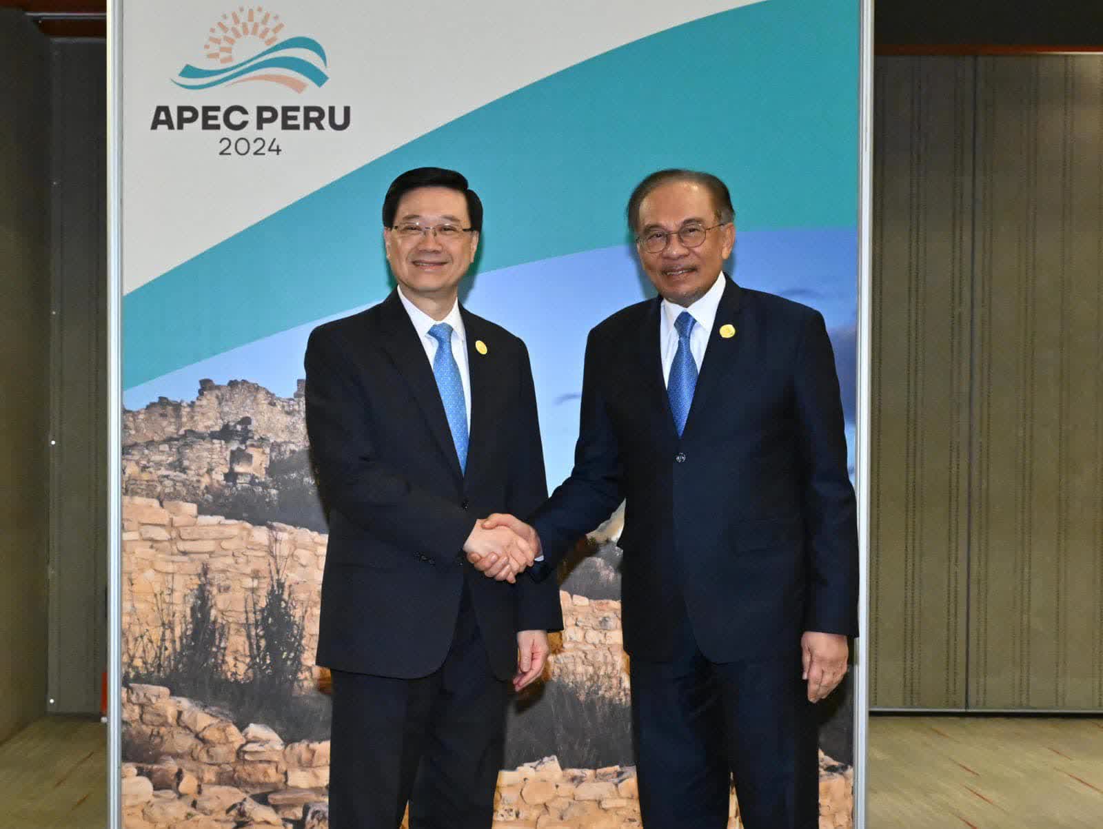 此外,李家超很高興於APEC會議期間與馬來西亞總理安華會面,恭賀馬來西亞擔任東盟2025年輪值主席國,期待未來跟馬來西亞政府緊密合作,繼續促進香港及東盟的聯繫及協作。他亦感謝馬來西亞支持香港計劃於吉隆坡增設經濟貿易辦事處,而此將會是香港於東盟地區設立的第4個經貿辦。